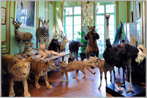 ‘Mocht u tijd hebben, dan moet u even de winkel van Deyrolle binnenlopen. Bij de taxidermist in de Rue du Bac kunt u een chimpansee, gorilla of orangoetan kopen.’