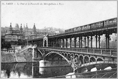 Een van de allermooiste Parijse metrobruggen is te vinden bij metro Passy (metrolijn 6), valkbij het intieme kerkhof van Passy, waar Manet en Suzanne samen begraven liggen. Het metrostation ligt zowel ondergronds als bovengronds. Stap bij Passy uit de metro en wandel, nee, liever flaneer als een echte boulevardier over de metrobrug. De brug werd gebouwd in 1903 en is met zijn bogengalerij en sierlijke lampen een juweeltje. Een locatie waar heel wat legendarische speelfilms zijn opgenomen.